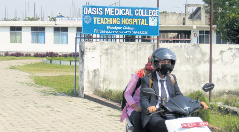 चितवनस्थित ओएसिस मेडिकल कलेज तथा टिचिङ हस्पिटलले मापदण्ड नै नपुर्याई स्नातक तहको नर्सिङ कक्षा सञ्चालन गरेको पाइएको छ। कलेजले पाँच वर्षदेखि अवैध ढंगले अध्यापन गराएको खुलेपछि विद्यार्थीको भविष्य अन्योलमा परेको छ। यो खबर दिनेश गौतमले अन्नपूर्ण पोष्टमा लेख्नुभएकाे छ।