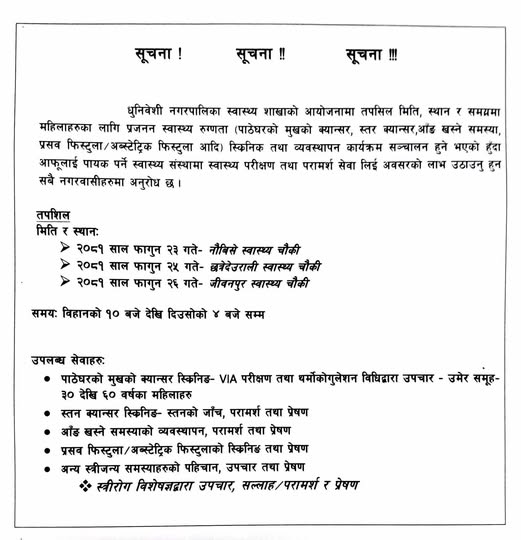 धुनिवेशी नगरपालिकाको सुचना